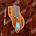 Custom handmade Damascus steel bull cutter knife. Over all length is 8 inches. Handle is made of resin . Also come with leather sheath.