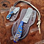 Custom handmade Damascus steel cowboy knife.